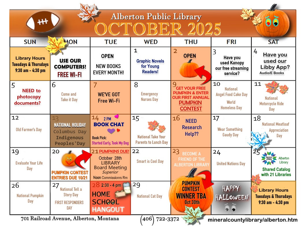 The Alberton Branch / Public Library in Alberton, Montana, is located in the town's historic Community Center. Something's always happening. Join us.