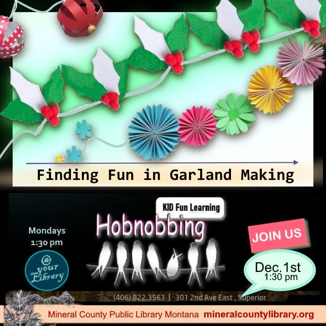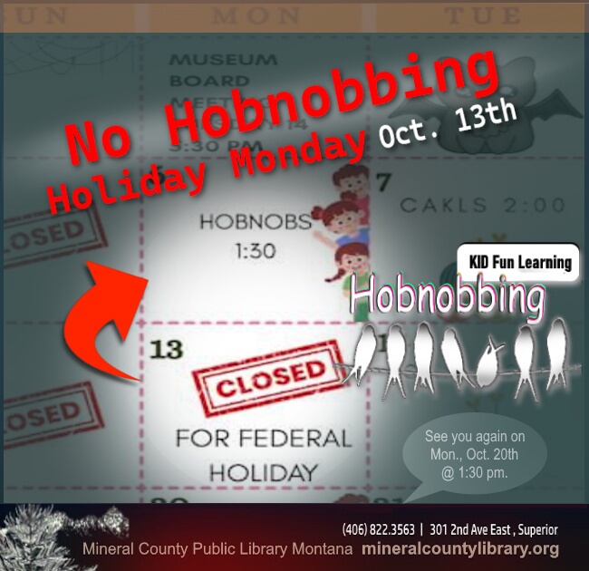 1:30 pm: Hobnobbing - Kids Group offers weekly learning adventures with followup of crafting fun! Join us.