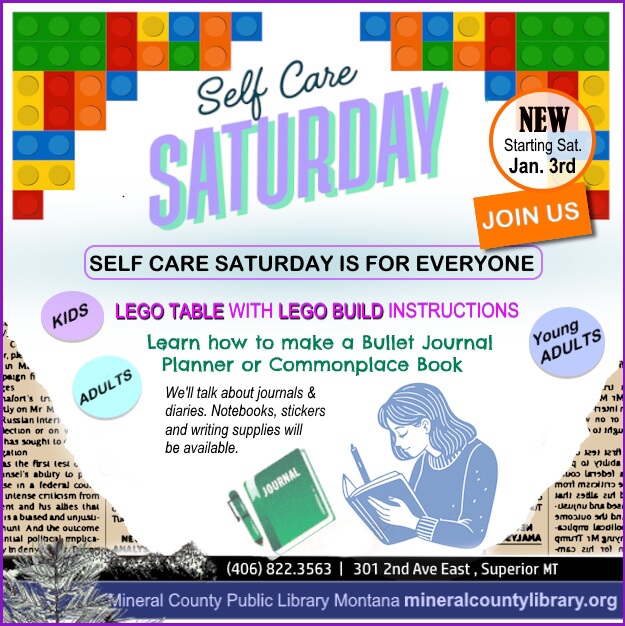 Join us for the inaugural event Saturday, January 3rd. Heather has Lego Table & Instructions for kids and Journaling & Journal Making for the Young Adults/ Adults. Writing supplies available! JOIN US!